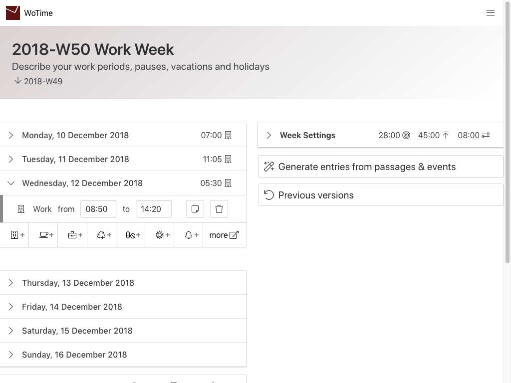 Click on a weekday to unfold its entries.